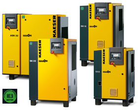 KAESER screw compressors with V-belt drive provide outstanding efficiency and reliability. KAESER was one of the first compressor manufacturers to introduce the V-belt drive system. The KAESER drive is characterised by an automatic tensioning device that ensures constant transmission efficiency and reduced maintenance costs. SX series models are equipped with a flat drive belt that does not require additional tensioning.